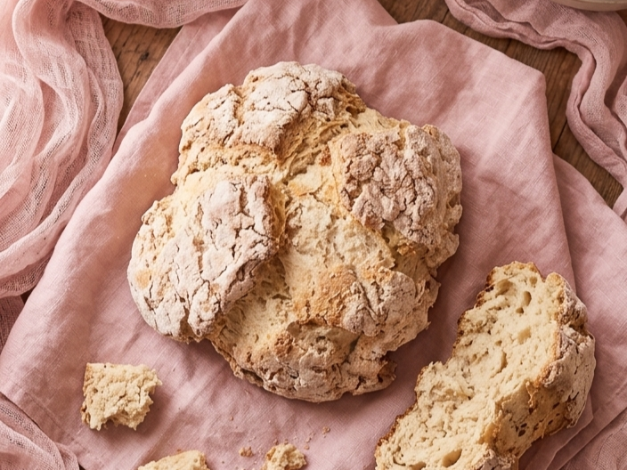 Mix dry ingredients. Add the buttermilk and combine until a dough just forms. Shape into a round, score an X on top (to let the fairies out of course). Bake at 425°F for 35–40 minutes.